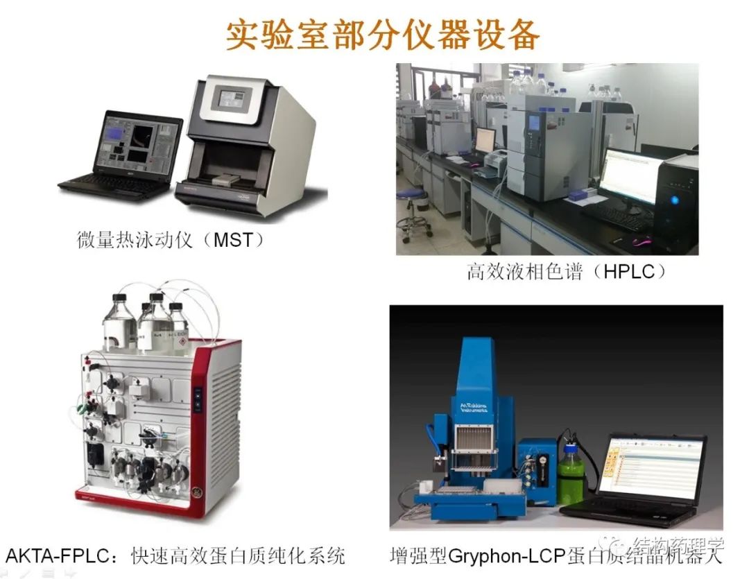 实验室已经成功建立了小分子药物设计、合成、体内外活性评价、机制研究;中药和天然产物活性成分提取分离,活性评价及机制研究等一系列创新药物发现的临床前评价所需的实验平台。包括结构生物学研究平台、人工智能药物筛选和设计平台、细胞生物学和分子生物学平台、蛋白质组学和代谢组学平台、药理学研究平台、药物化学和中药化学研究平台等。技术平台涵盖有机合成化学、中药和天然药物化学、中药药理学、中药药剂学与药物分析学、蛋白质组学与代谢组学、计算机虚拟筛选与辅助药物设计、蛋白质结构生物学、生物化学和酶动力学、细胞分子生物学、药物靶点筛选和表型筛选、药效学活性和毒理学评价等创新药物(中药)发现的临床前评价各个环节,目前已经发现多个先导化合物/候选药物。