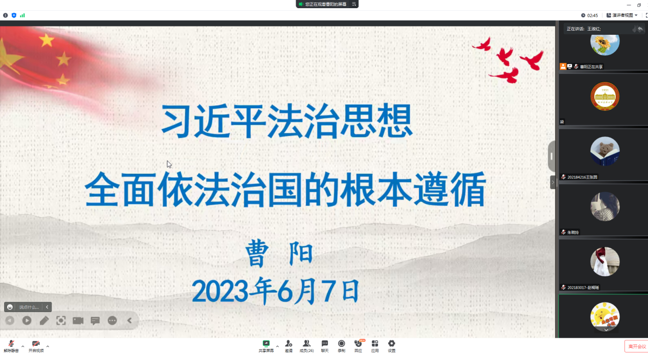 6月7日best365在线官网登录入口党委召开全院政治理论学习会议,主题为深入学习习近平法治思想,同时原原本本学习《党章》第一章至第五章。学院师生党员参会,党委组织员曹阳主持。首先,党委组织员曹阳从开辟中国特色社会主义法治理论和实践新境界、深入把握习近平法治思想的科学体系和基本内容、以习近平法治思想为指导深入推进全面依法治国三个方面详细领学了习近平法治思想。她强调,党的十八大以来,习近平总书记以马克思主义政治家...